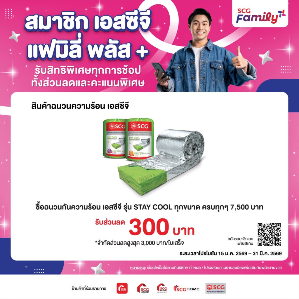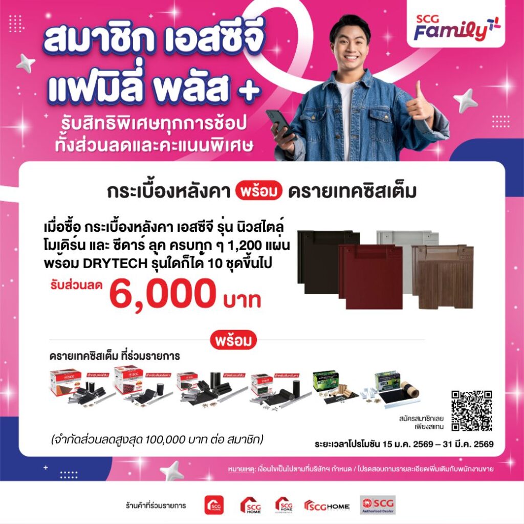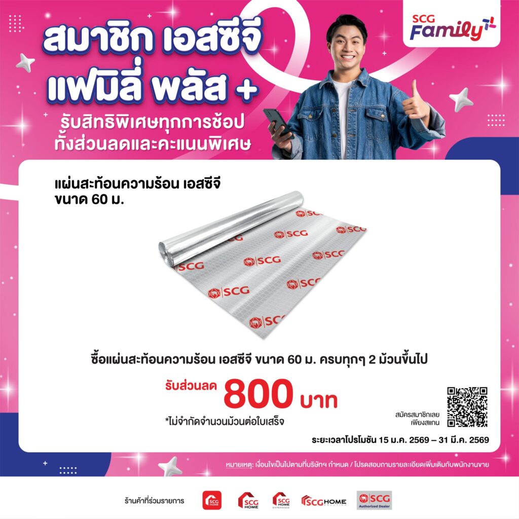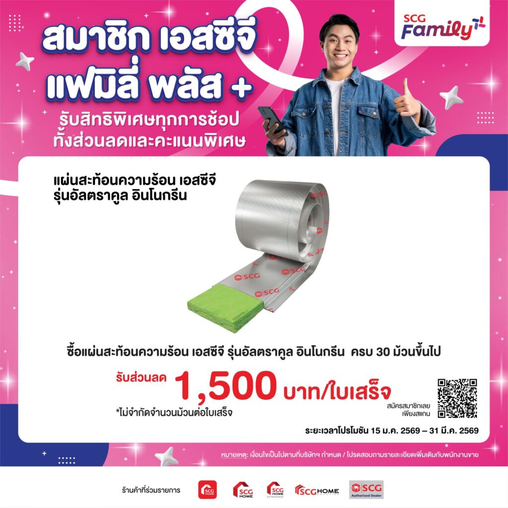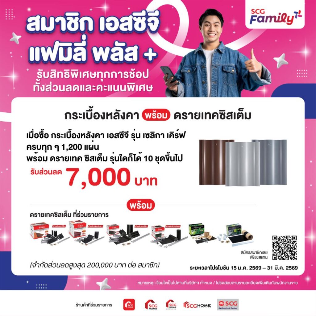 โปรโมชั่นสุดพิเศษสำหรับสมาชิก SCG Family Plus+ เริ่มตั้งแต่วันที่ 15 มกราคม – 31 มีนาคม 2569 มอบความคุ้มค่าที่มากกว่าการซื้อสินค้าทั่วไป เพราะสมาชิกจะได้รับทั้งส่วนลดพิเศษตามเงื่อนไขที่กำหนด และคะแนนสะสมเพิ่มในทุกยอดการซื้อ